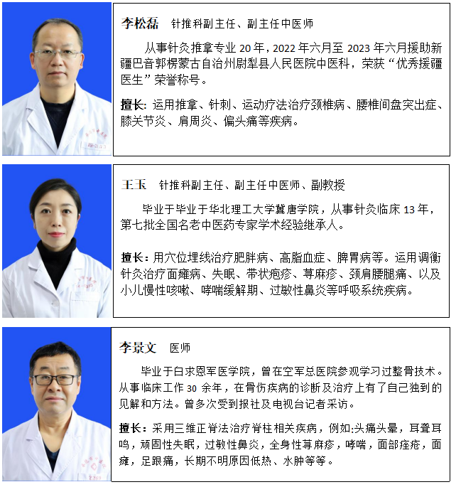 优势病种:腰椎间盘突出症、面周围神经炎、神经根型颈椎病、带状疱疹等疾病。