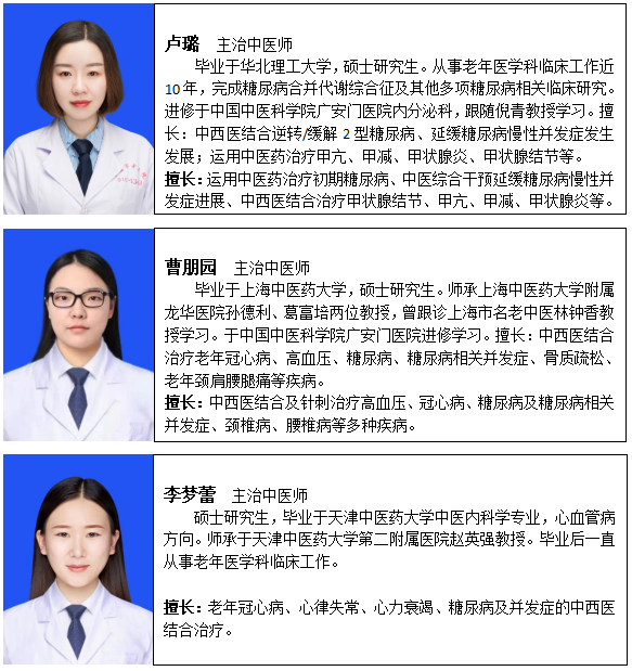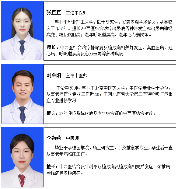 糖尿病及并发症,甲状腺疾病,高尿酸血症:中西医结合治疗糖尿病(包括糖尿病前期),治疗高血糖、糖尿病酮症酸中毒、高血糖高渗综合征、糖尿病神经病变、糖尿病血管病变;甲状腺结节、甲状腺炎、甲亢、甲减;高尿酸血症、痛风。